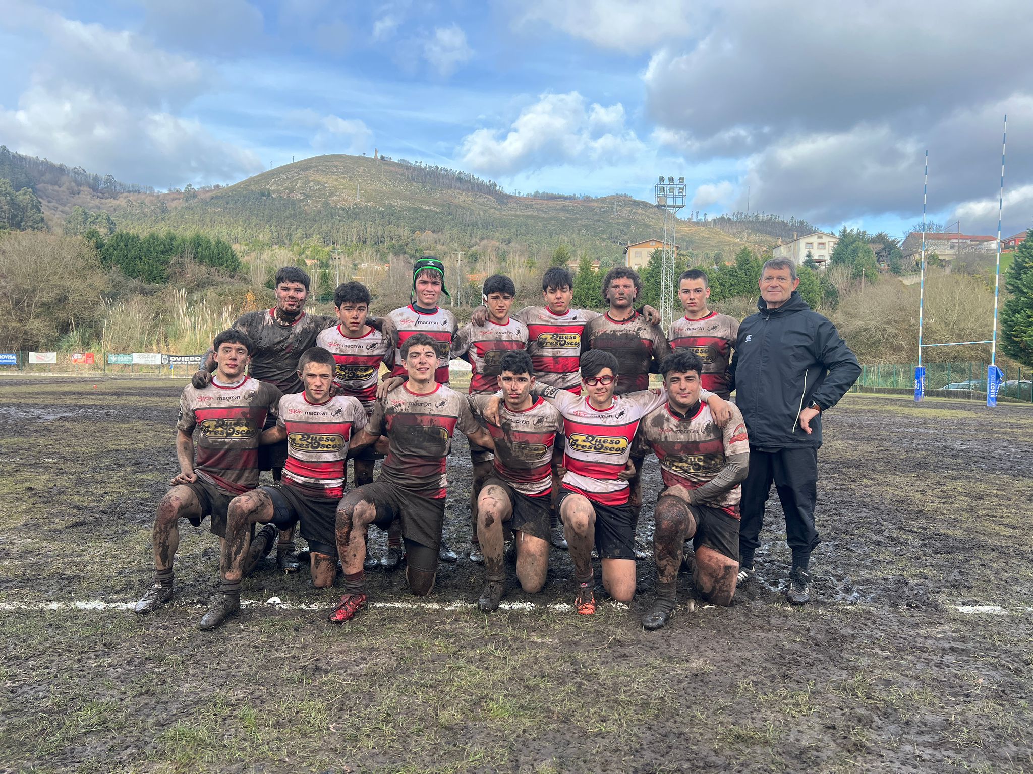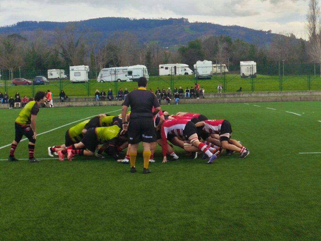 El equipo sub18, acudió a la cita muy mermado de efectivos, con únicamente trece jugadores debido a las bajas por lesión y sanción. El equipo azul, más acostumbrado al embarrado campo ovetense y aprovechando su superioridad numérica realizó una buena primera parte que dejaba el marcador en 21 a 0 al descanso. Nuestros chicos, pese a las adversidades no se rendirían en ningún momento y en la recta final del partido serían capaces de anotar el ensayo del honor, que dejaba el marcador en el definitivo 40 a 7.