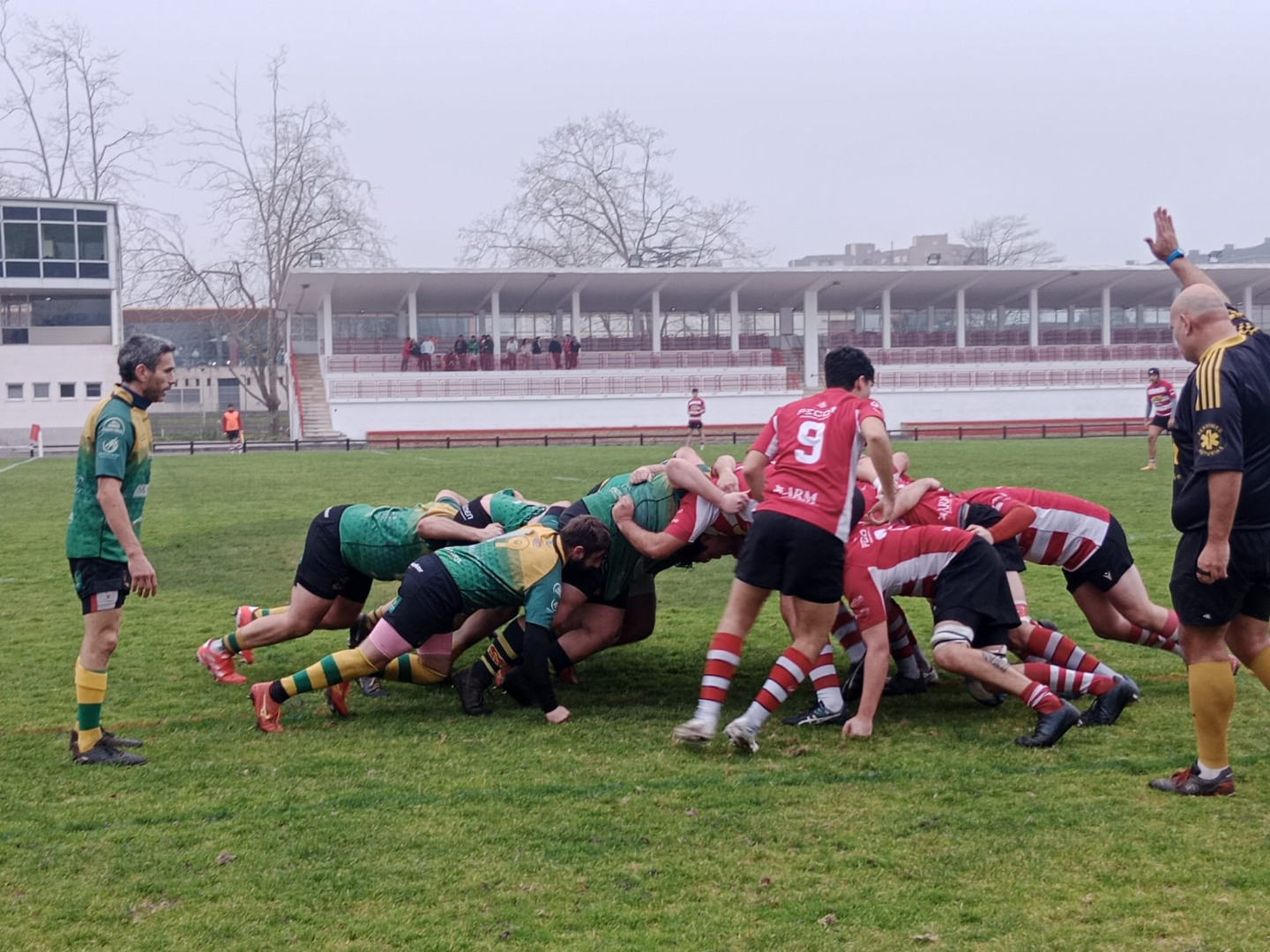 Tras una primera parte de dominio visitante, con tres ensayos sin transformar que les situaban en ventaja, 0 a 15 en el marcador al descanso; la segunda parte comenzaría con nuestros chicos dispuestos a dar la vuelta al choque.